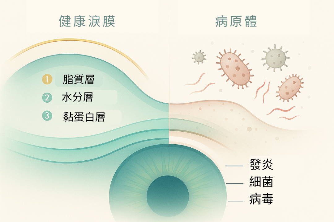 淚液不足會削弱眼睛的天然防護屏障,使其更易受到結膜炎等感染威脅。